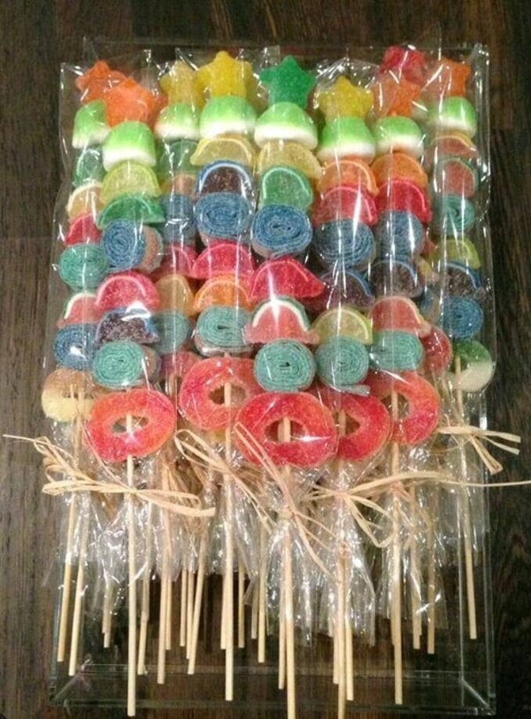 La brochette de bonbons est une gourmandise colorée et amusante composée de divers bonbons enfilés sur un bâtonnet. Ces sucreries peuvent inclure des guimauves, des bonbons gélifiés, des bonbons acidulés . Présentée sous forme de brochette, elle est idéale pour les fêtes d'anniversaire, les événements festifs ou comme petit cadeau. Sa variété de textures et de saveurs, allant du moelleux au croquant, en fait une friandise ludique et délicieuse, souvent très appréciée des enfants et des adultes gourmands.possibilités de personalisation sur demande